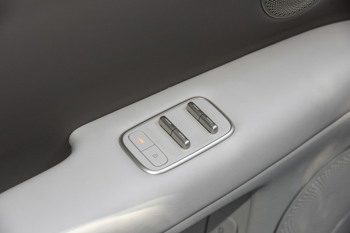 车身侧面轮廓延续了流畅线型,采用隐藏式门把手与双五幅轮圈设计,匹配红色制动卡钳,整体呈现较为动感的风格。在尺寸方面,增程版长宽高分别为4937mm、1988mm、1671mm,轴距为2960mm。纯电版本除高度降低2mm外,其余参数保持一致。